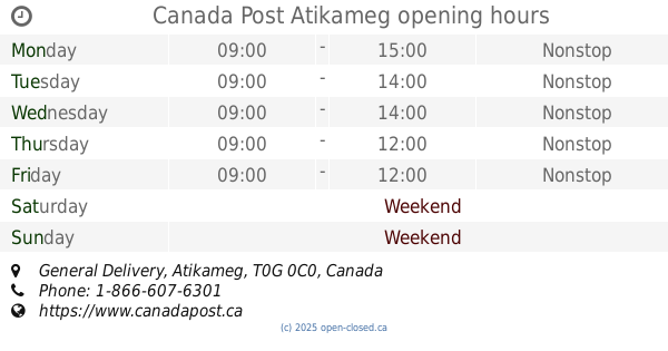 Please note that the information for Canada Post In Atikameg, General Delivery and all other Branches is for reference only.